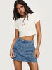 - Cargo style, mid-wash denim, belt looped waist, zip & button fastening, six pocket design, branded patch at back