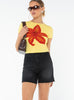 - Belt looped waist, classic five-pocket design, branded patch at back, raw edge hem