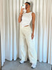 - Beige washed, belt looped waist, button & zip closure, cargo pockets, raw cut hem, branded patch at back