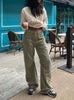 - Khaki washed, belt looped waist, button & zip closure, pleat inner leg detail, cargo pockets