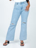 - Light washed, belt looped waist, button & zip closure, five pockets, branded patch at back, wide leg